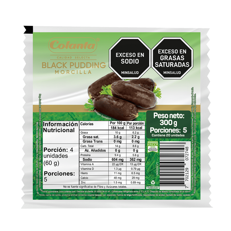 MORCILLA COCTEL PREMIUM COLANTA*300GR